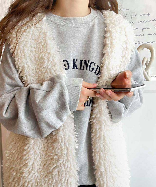 もこもこ感がかわいいプードルフェイクファーはカジュアルコーデにぴったり。