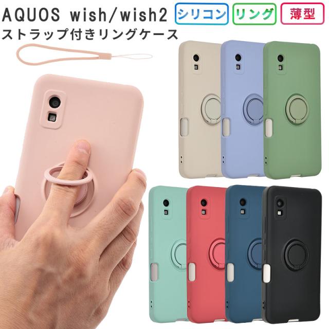 AQUOS wish ケース AQUOS wish2 ケース シリコン リング スマホケース AQUOS wish SHG06 ケース SHG08 ケース おしゃれ 耐衝撃 カバー シンプル かわいい ストラップ 携帯ケース SH-51C ケース アクオス wishケース ソフトケース A104SH A204SH カラフル