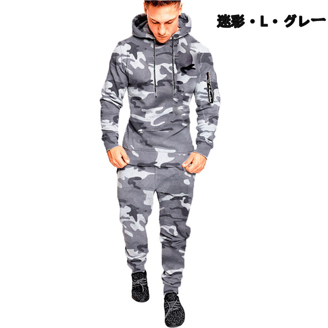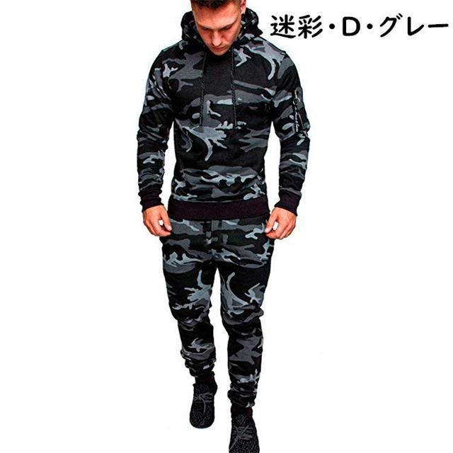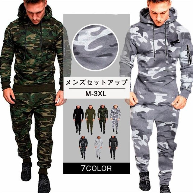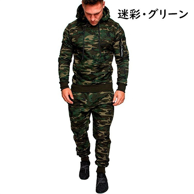 スウェット上下 メンズ上下セット ジャージ パーカー パンツ 普段着 部屋着 スポーツウェア 無地 カモフラ 迷彩 フード付き