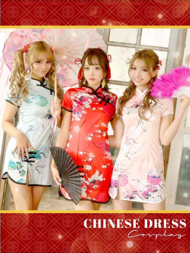 ☆色違いでお友達とお揃いコスプレをしても映えるチャイナコスチュームはテーマパークなどのハロウィンパーティーに行く時のコスプレ衣装にもピッタリのミニ丈チャイナドレスです♪