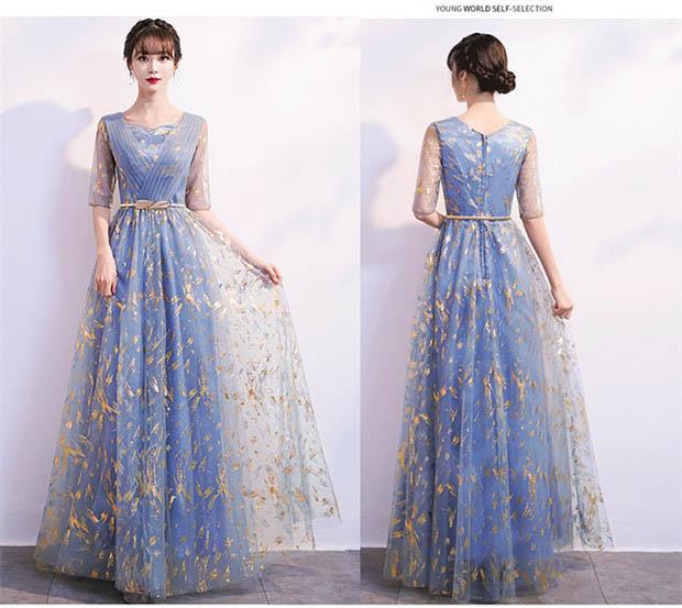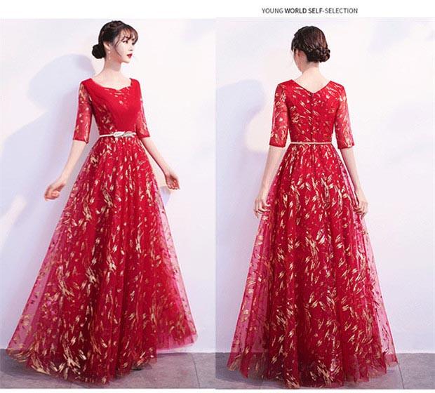 パーティードレス ロングドレス 演奏会 袖あり ドレス ラウンドネック 成人式 同窓会 カラオケドレス 大人 ピアノ 発表会 Aライン 結婚式 ステージドレス 二次会 母親 ウエディング ハワイ 上品 20代 30代 40代 ad108c0c0la