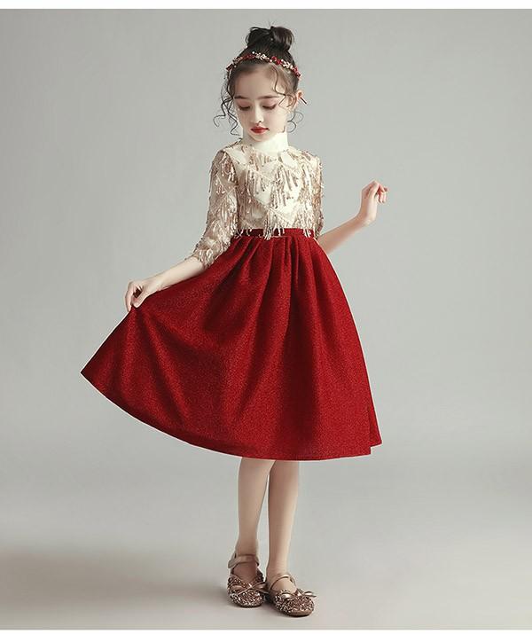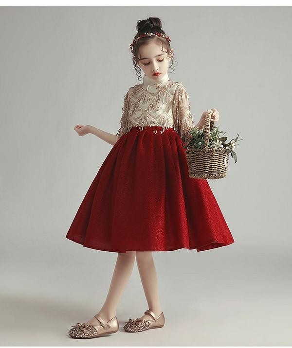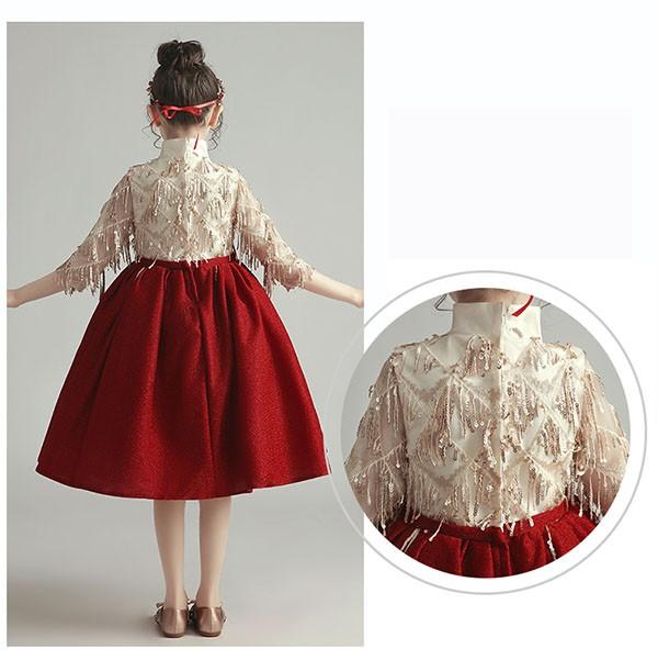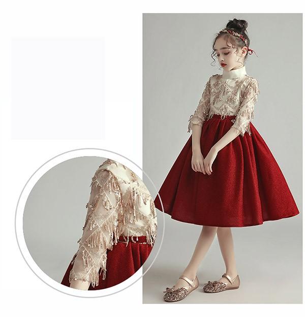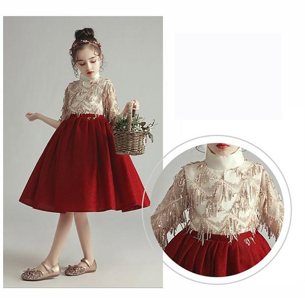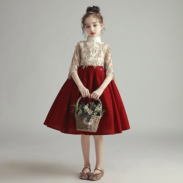 ピアノ発表会 ドレス 中学生 ワンピース 女の子 キッズドレス ショート ひざ丈 春秋向け ハイネック ガール 子供ドレス 袖あり 演奏会 フラワーガール ベールガール リングガール プリンセスドレス ブライダル フォーマル 七五三 可愛い お姫様 100 110 120 130 140 150 160 dt224x1x1la
