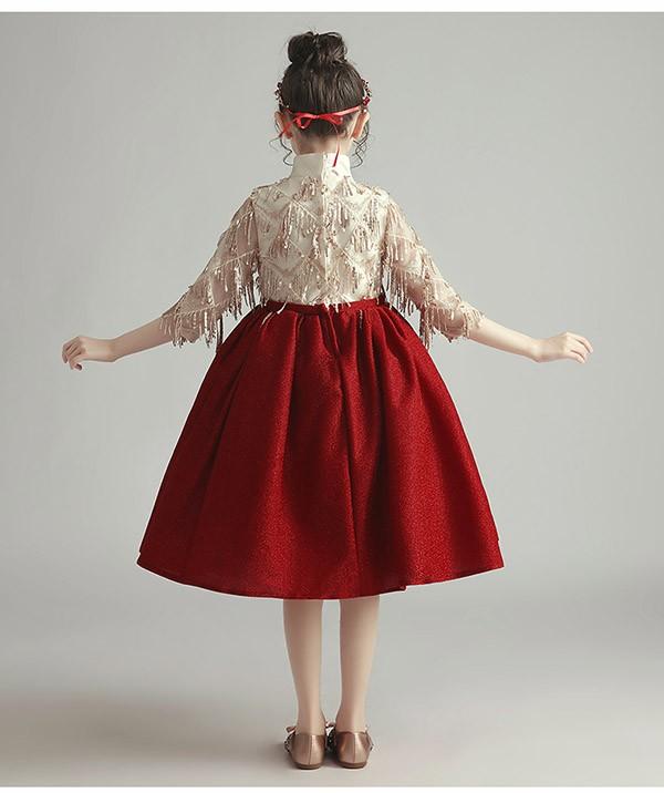 【レビュー投稿で+5%還元】ピアノ発表会 ドレス 中学生 ワンピース 女の子 キッズドレス ショート ひざ丈 春秋向け ハイネック 子供ドレス 演奏会 フラワーガール