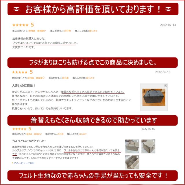 赤ちゃんグッズを入れるものだから、安全なものを使いたいというママ&パパのお声を反映して、国際的な検査機関で厳正な品質検査を行いクリアしました。