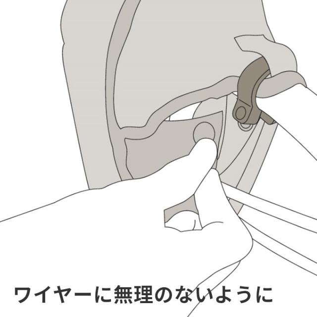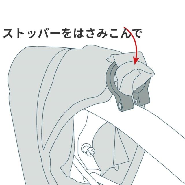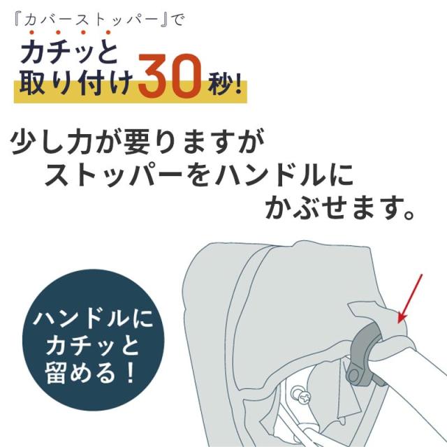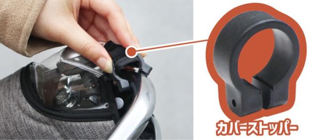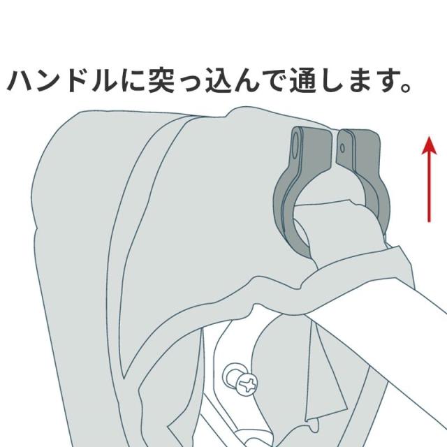 従来のひもで結ぶ方法を改良し、ハンドルにはめ込むストッパー式になりました。よりずれにくく装着も簡単に!!