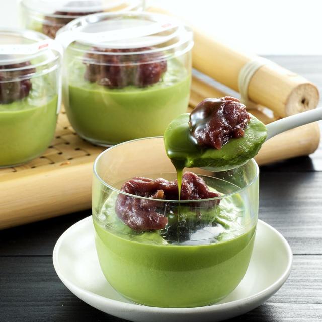 とろけるような抹茶プリンと特製のあんこは相性よく、さらに添付の濃厚な抹茶みつをたっぷりかけると、抹茶好きにはたまらない抹茶の風味が口の中いっぱいに広がります。