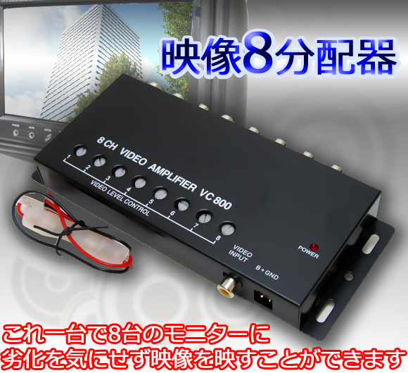 ブースター機能/コントラスト調整可能 モニター用 映像8分配器