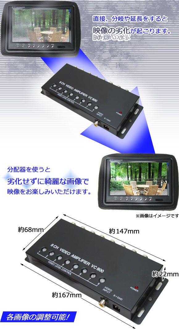 分配機 ブースター機能/コントラスト調整可能 モニター用 映像8分配器 AP-SPLITTER-008 AP 映像分配器 映像分配器チャンネル 8分配器 8ポート 切替器 ディスプレイ分配器 モニタ分配器 モニター分配器 モニター ヘッドレストモニター headrest monitor ビデオブースター サンバイザーモニター オンダッシュモニター ヘッドレストモニター ミラーモニター フリップダウンモニター