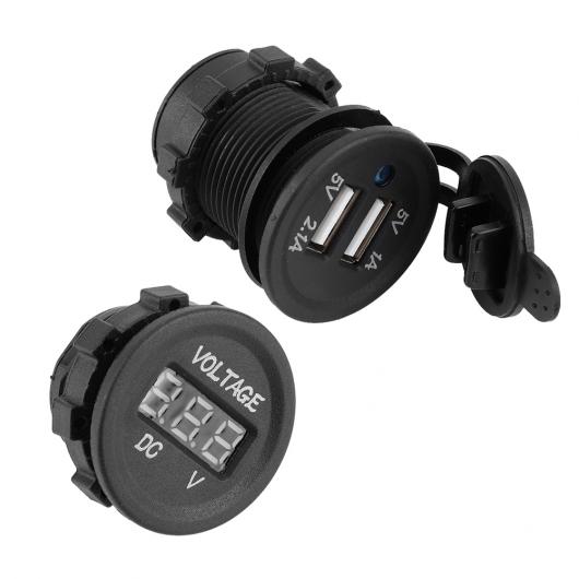 AL 12V 24V オートバイ USB 充電器パネルソケットデジタルディスプレイ電圧 メーター メーターソケット アクセサリー AL-DD-1286