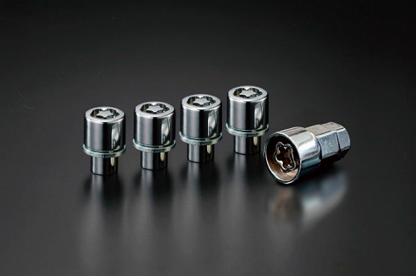 ナット形状は市販の工具を使って取り外す事が難しく盗難抑止効果の高い内溝タイプを採用し、付属の専用ソケット以外では開錠が困難です。