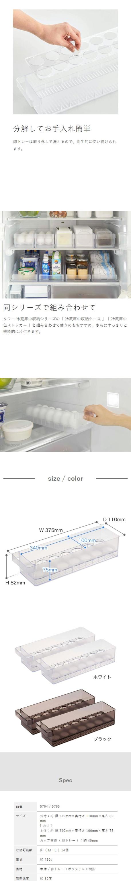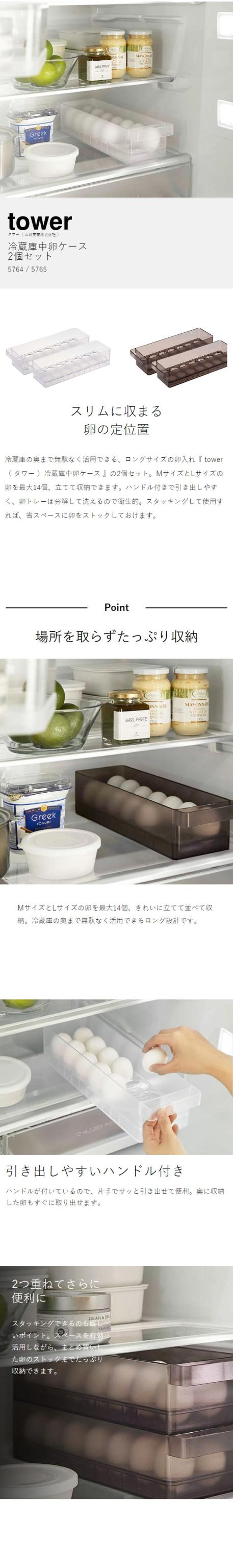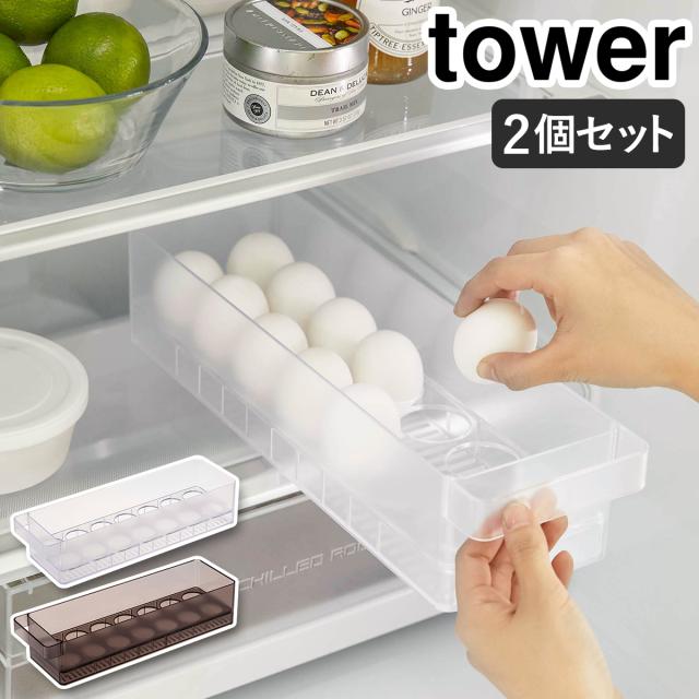 [ 冷蔵庫中卵ケース タワー 2個セット ]山崎実業 tower 卵入れ 冷蔵庫収納 卵トレー 卵収納 たまご収納 14個 収納ケース キッチン収納 冷蔵庫内 引き出し 冷蔵庫整理 エッグホルダー 整理 片づける タワーシリーズ 北欧 おしゃれ yamazaki ブラック ホワイト 5764 5765