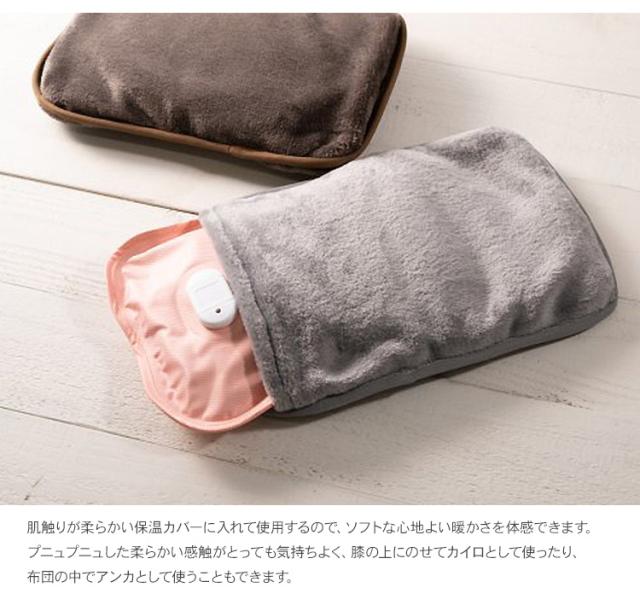 肌触りが柔らかい保温カバーに入れて使用するので、ソフトな心地よい暖かさを体感できます。