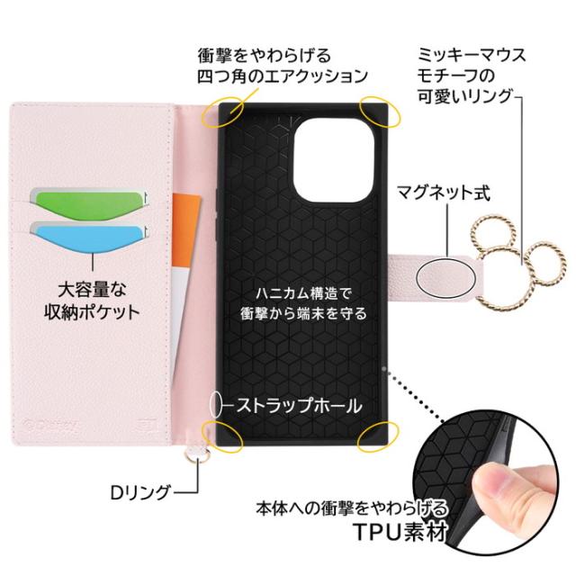 iPhone14ProMax ディズニー ミッキー 手帳型 ケース iPhone 14 Pro リング付 耐衝撃 ソフト ハード スクエア スマホケース スマホカバー ピンク ブラック ベージュ