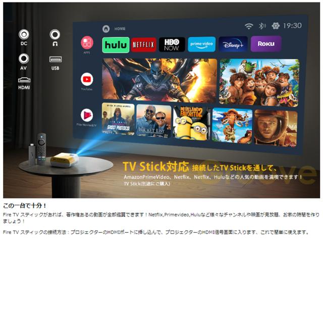 テレビの代わりに、投影サイズは300インチまでの大画面投影できます、まるでお家のホームシェアター!