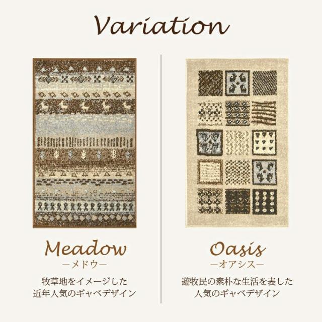 遊牧民の素朴な生活を表した人気のギャベデザイン「オアシス」の2柄からお選びいただけます。