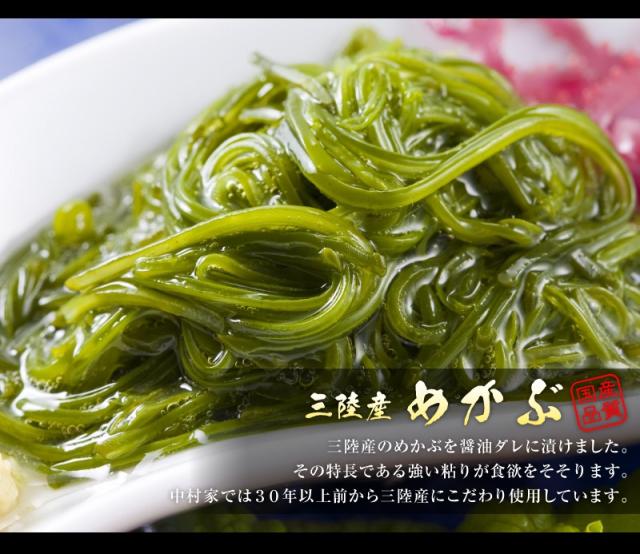 めかぶ(三陸産)、いくら(国産)、あわび(国産)、うに(三陸産)