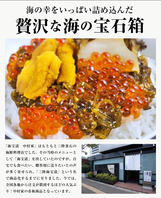 中村家の海宝漬 「漣」350g 老舗の看板商品 三陸海宝漬にウニを加えた別バージョン増量 送料無料 ご贈答 お歳暮 ギフト お中元 のし可