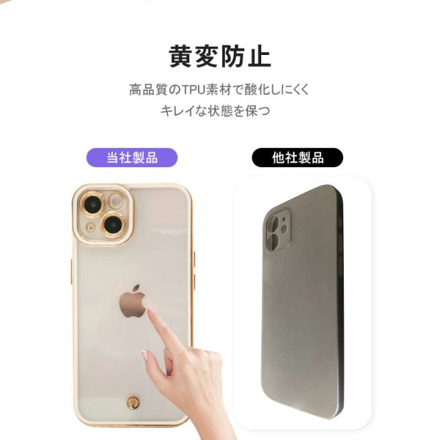 【透明感漂う&上品さ】透明な裏面はiPhone本来の美しさを示し、ケースの裏には目に見えない粒子状の凹凸が施されており、本体に密着してしまったり、ケースの内側でにじみ現象を発生するのを防ぐことができます。そして、メッキ加工によって、おしゃれで独特の輝きを放ち、スマホの上品さをプラス。