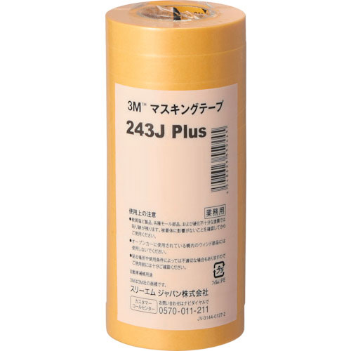 スリーエム/3M マスキングテープ243J Plus 黄色 巾20mm×長さ18m 入数:1パック(6巻) 3M243J20P