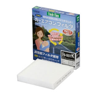 車内に入る空気をキレイにする高性能フィルタで、チリ・ホコリ・花粉・黄砂などをガード。嫌な臭いも低減、エアコンの効きも改善します。