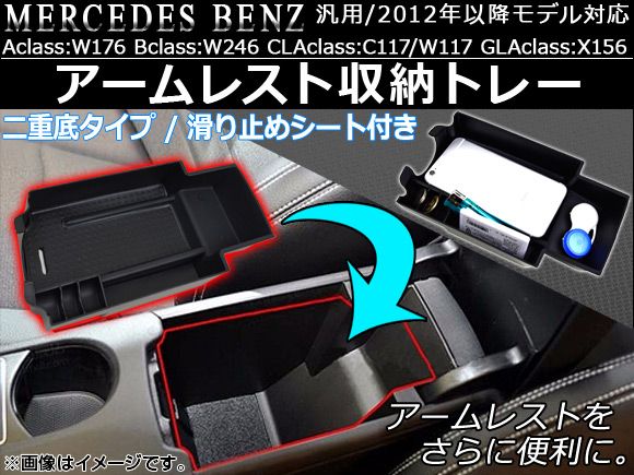 AP アームレスト収納トレー マットブラック ABS メルセデスベンツ汎用 ゴムマット付き AP-AS007