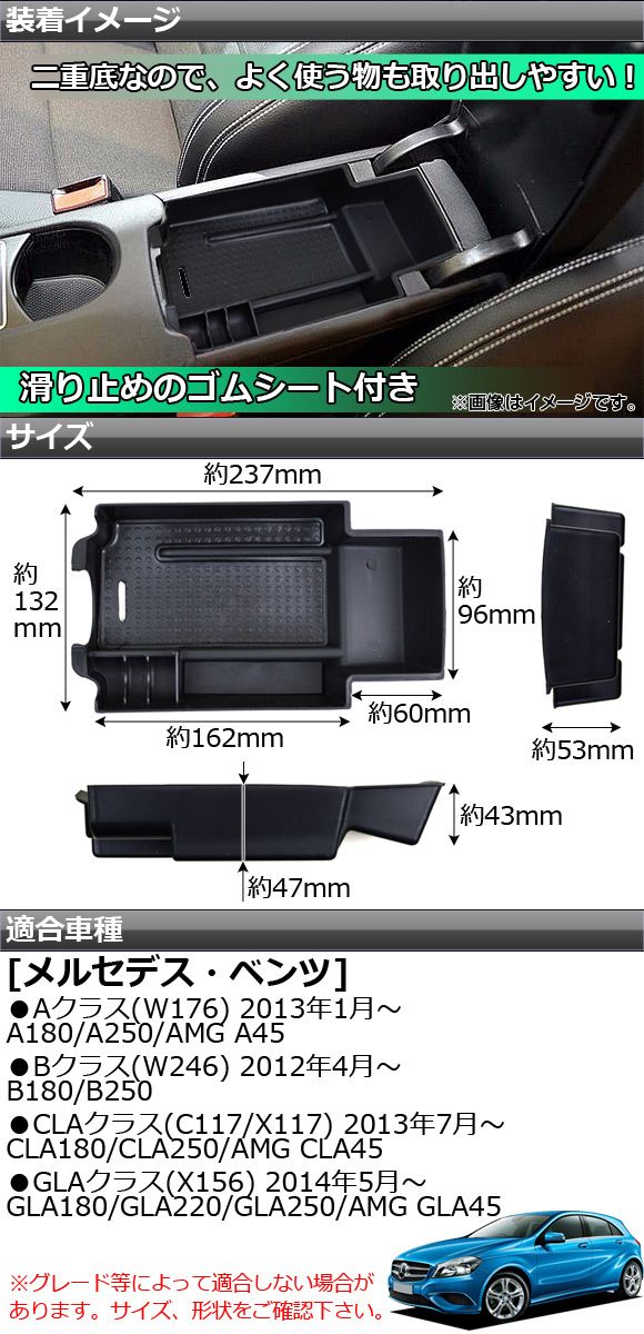 458665790 収納ボックス アームレスト コンソールボックス グローブボックス 収納ケース 収納トレイ Aクラス Bクラス CLAクラス GLAクラス A180 A250 B180 B250 GLA180 GLA220 GLA250 AMG 45 4MATIC W176 W246 C117 X117 X156 黒 black マット 艶消し ベンツ 肘掛け 肘かけ 肘置き コンソール ボックス センターコンソール トレイ 二重底 小物入れ 車内 収納 内装 内装パーツ パーツ インテリア 便利グッズ 整理 ミリ 13.2 23.7 4.7 センチ メルセデス・ベンツ MERCEDES BENZ automobile motorcar オートモービル モーターカー カー 車 自動車 車両 4562430444633