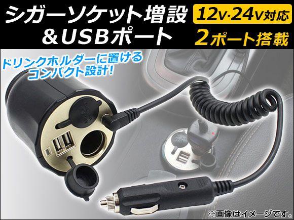 AP シガーソケット増設&USBポート シガーソケット2ポート USB2ポート 12V/24V AP-4T013