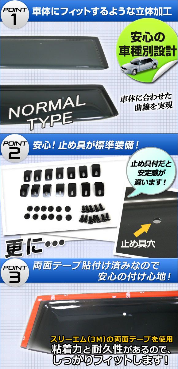 薄くて丈夫な車種別サイドバイザーです。