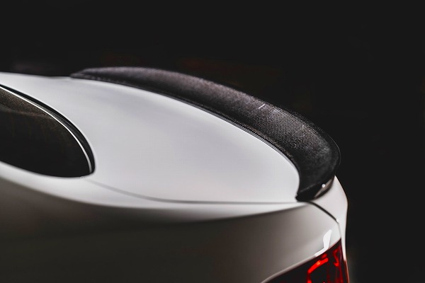 リアビューを引き締め、ヨーロピアンスポーツスタイルを追求した高品質ウェットカーボン仕様のトランクスポイラー。