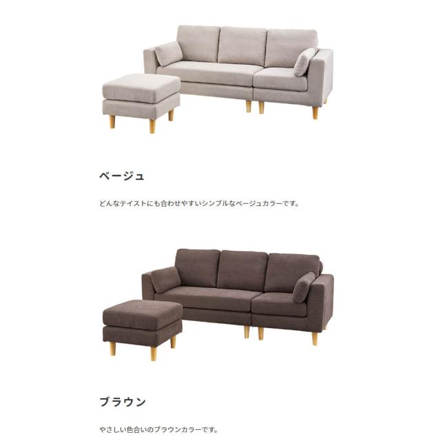 ベージュ ソファ ソファー 3人掛け カウチソファ 北欧