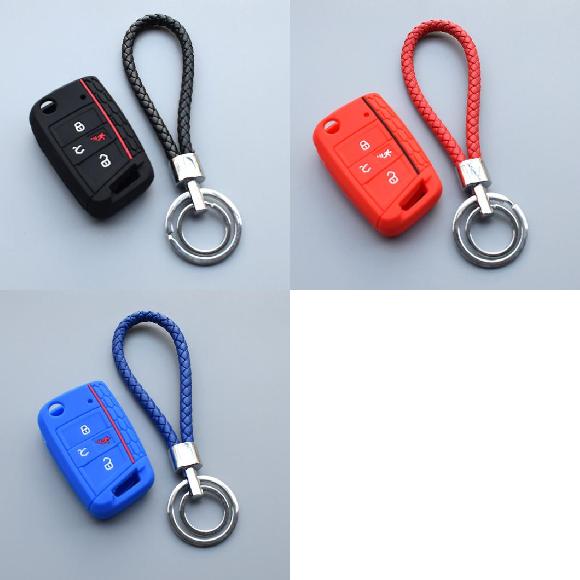 AL キーカバー 4ボタン キー シリコン フォブ カバー ケース スキン 適用: VW ポロ 2016 2017 ゴルフ 7 MK7 シュコダ オクタヴィア コンビ A7 ブラックセット〜ブルーセット AL-II-4567