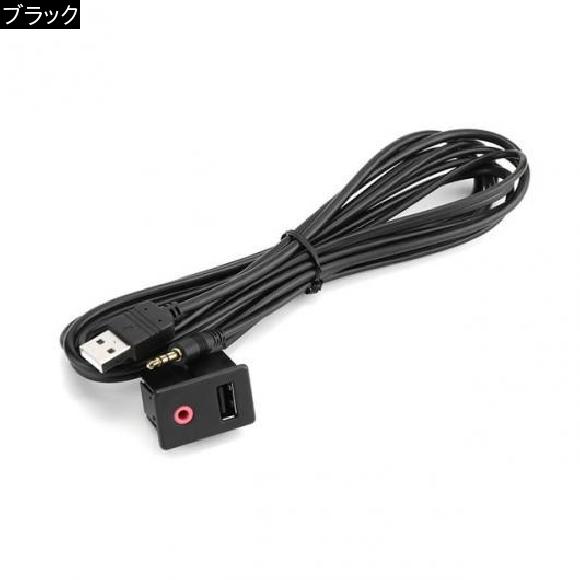 AL 車用ケーブル USB 3.5 mmプラグ ダッシュボード フラッシュマウント AUX 延長 ケーブル アダプタ トヨタ ブラック オーディオ ブラック AL-AA-6862