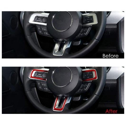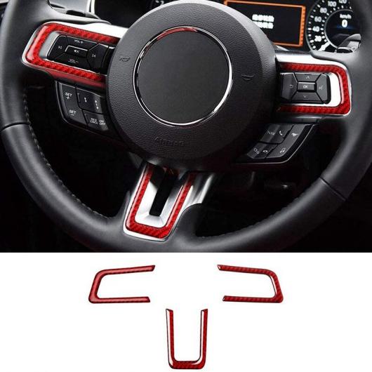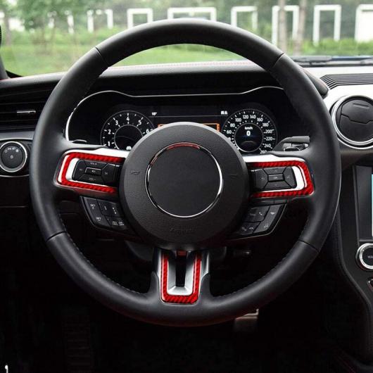 AL カーボンファイバー ステアリング ホイール 装飾 カバー トリム ステッカー 適用: フォード/FORD マスタング 2015-2017 アクセサリー レッド AL-JJ-5353