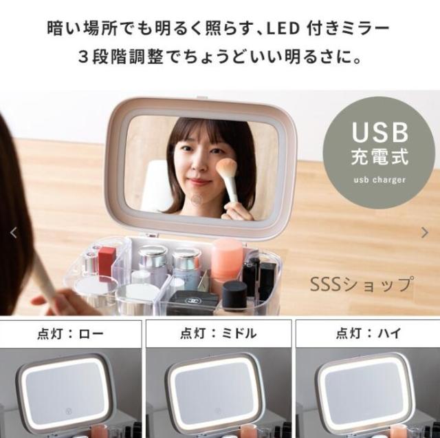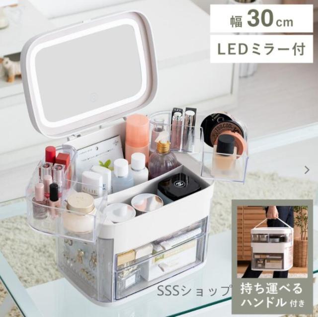 メイクボックス 鏡付き メイクケース 化粧品収納ボックス 大容量 コスメボックス 持ち運び ドレッサー LEDミラー付き