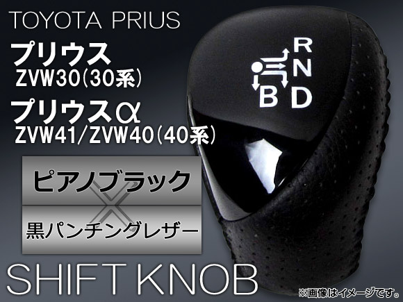 AP シフトノブ ピアノブラック×黒パンチングレザー APSN009 トヨタ プリウス/プリウスα ZVW30(30系)/ZVW41/ZVW40(40系)