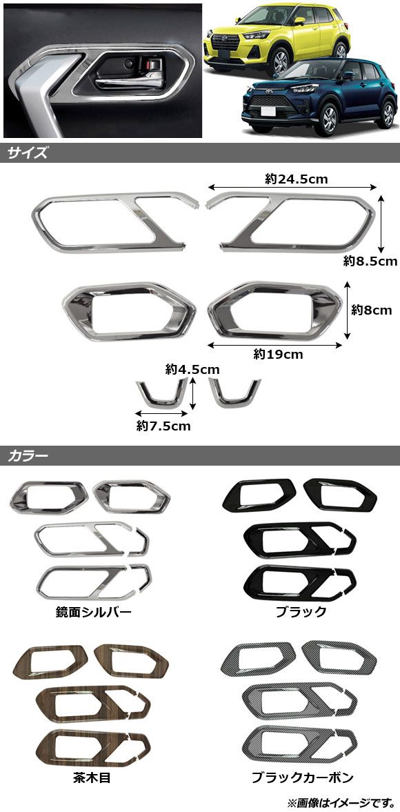 AP インナードアハンドルカバー 鏡面シルバー ABS製 AP-IT1295-KSI 入数:1セット(6個) トヨタ ライズ A200A/A210A 2019年11月〜