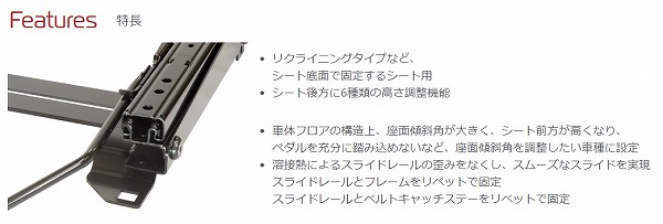 車体フロアの構造上、座面傾斜角が大きく、シート前方が高くなり、ペダルを充分に踏み込めないなど、座面傾斜角を調整したい車種に設定しています。
