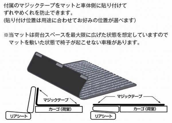 ※当マットは荷台スペースを最大限に広げた状態を想定していますので、マットを敷いた状態で椅子が起こせない車種があります。