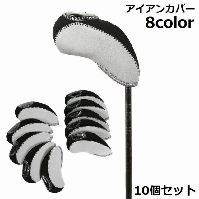 アイアンカバー ゴルフヘッドカバー 10個セット ソフト クッション シンプル 無地 窓付き 見える 番手 コンペ 景品 ギフト