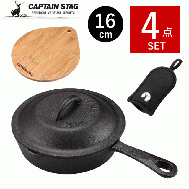 スキレット 20cm 4点セット 蓋付き スキレット蓋 カバー付き ミット スキレットカバー スキレットハンドルカバー スキレットプレート 鉄 フライパン グリルパン グリルプレート ふた 蓋 フタ キャンプ アウトドア クッカー UG-3028+3 キャプテンスタッグ