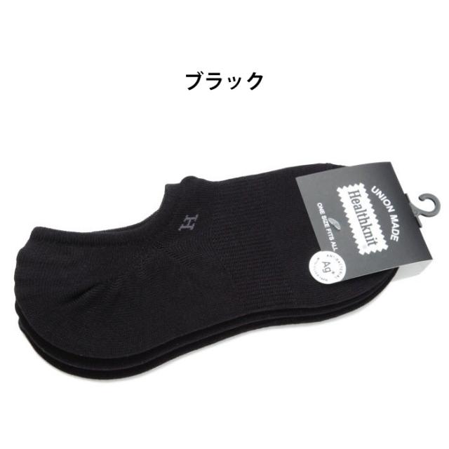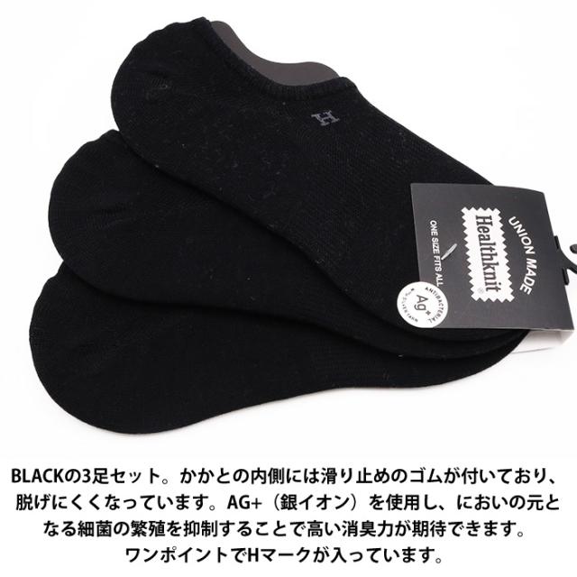 靴下 メンズ Healthknit ヘルスニット ソックス アンクル丈 くるぶしソックス ショート フットカバー 黒 ブラック 無地 Ag+ 3Pソックス 191-3534 足首 3足セット Ag+ 消臭