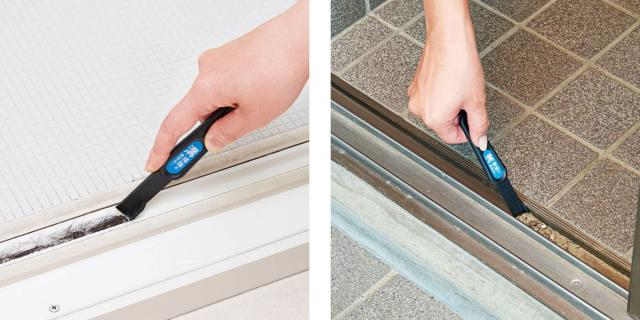 窓のサッシの掃除だけでなく、浴室のドアレールに溜まりがちな髪の毛やカビ掃除、玄関の引き戸の引っ掛かりの原因になる溜まった砂利を除去する時にも便利なツールです。