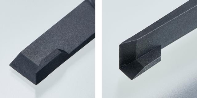 クリーナーの先端は様々な溝幅にも対応できる形状になっています。また、ガラス繊維を含ませたナイロン樹脂製なので、丈夫で傷を付けにくいのが特徴です。