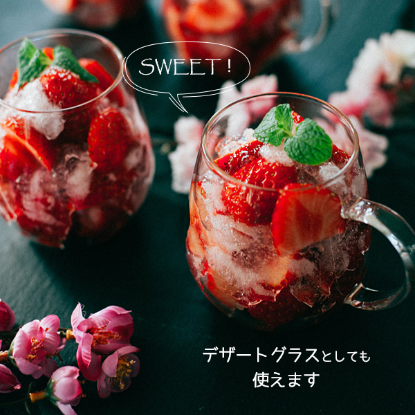デザートグラスとしても冷たいアイスや色とりどりのフルーツを入れて、デザートグラスとして使っても◎。