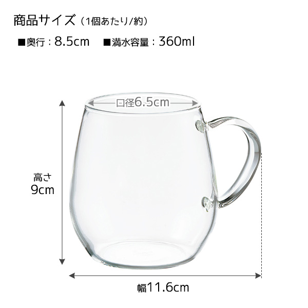 HARIO ハリオ ラウンドマグ 360ml 2個セット RDM-1824 | マグカップ コップ グラス 耐熱ガラス 電子レンジ 食洗機対応 2個入り ペアグラス デザートグラス