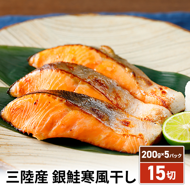 鮭 銀鮭 三陸産 銀鮭寒風干し 15切 1000g (200g×5パック) 宮城県産 養殖 さけ サケ しゃけ シャケ 切り身 冷凍
