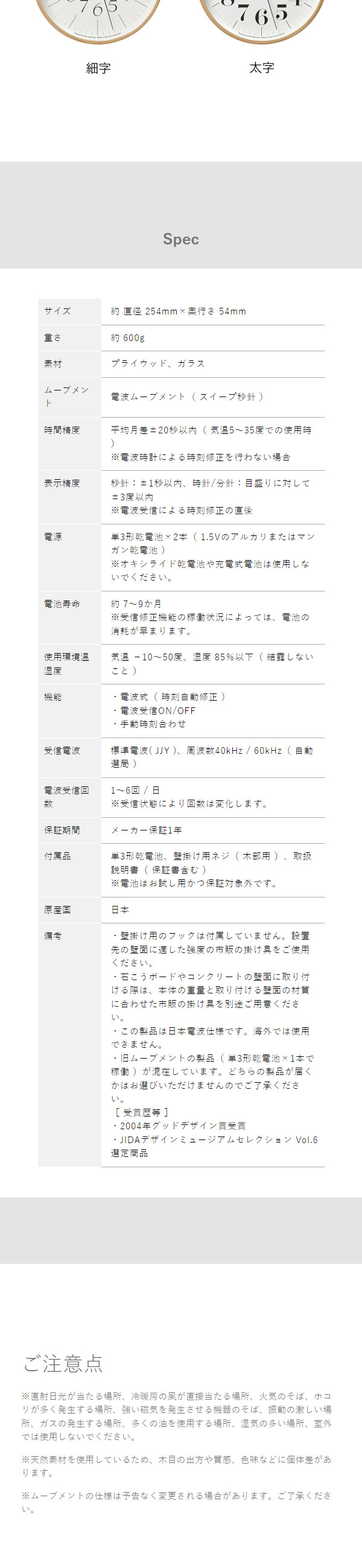 プロダクトデザインの巨匠、渡辺力が晩年に手がけた掛け時計『 Lemnos リキ クロック アールシー WR20 』。こだわり抜いた書体が映える白い文字盤を、タンバリンなど楽器専門の木工職人が作った木枠で囲むモダンなデザインです。10インチサイズの電波式で、細字・太字の2種類からお選びいただけます。