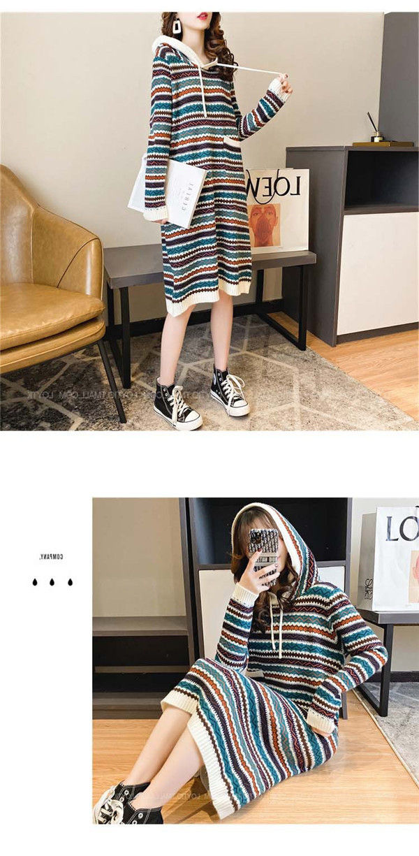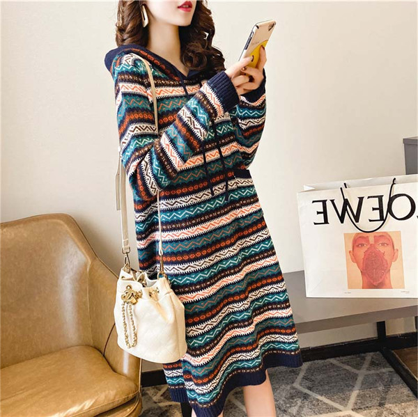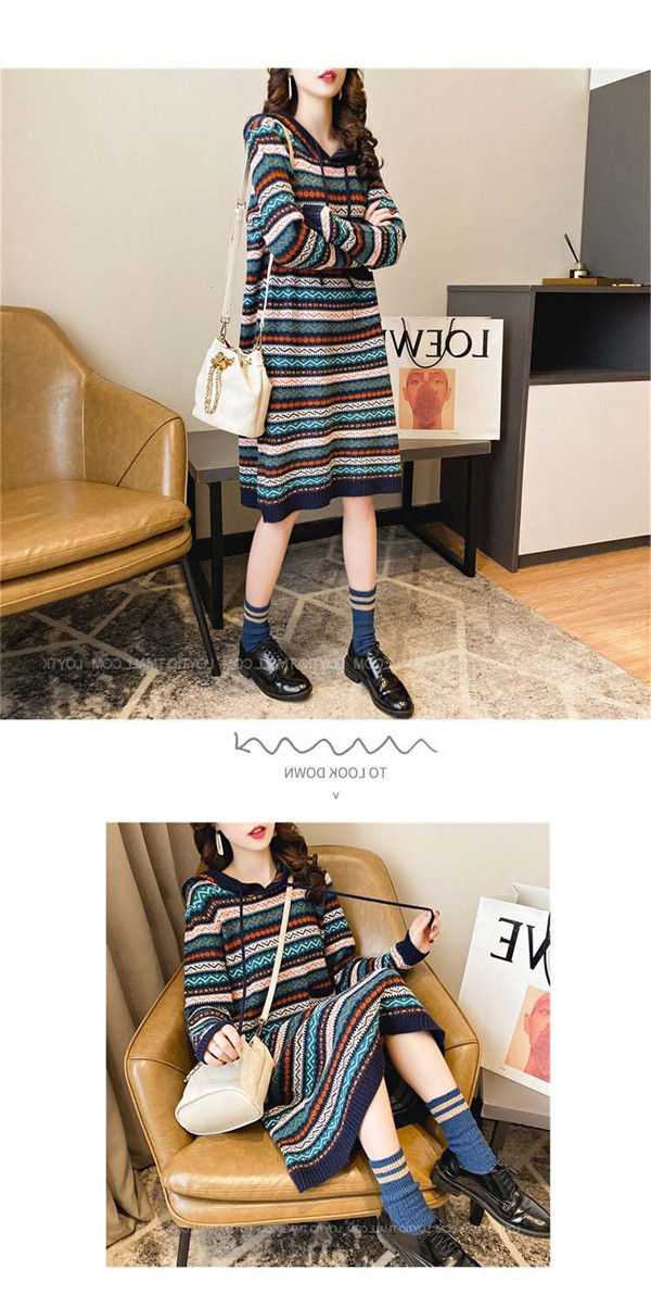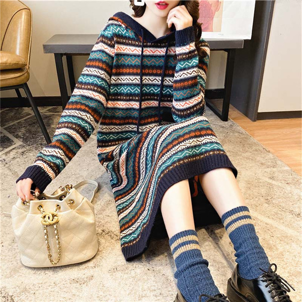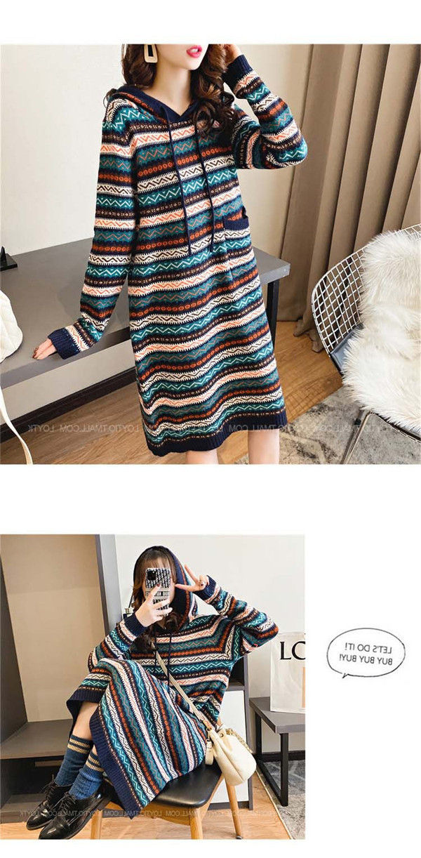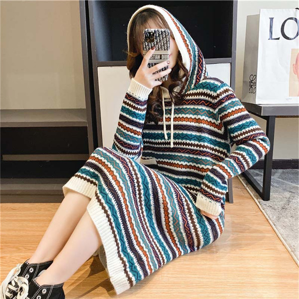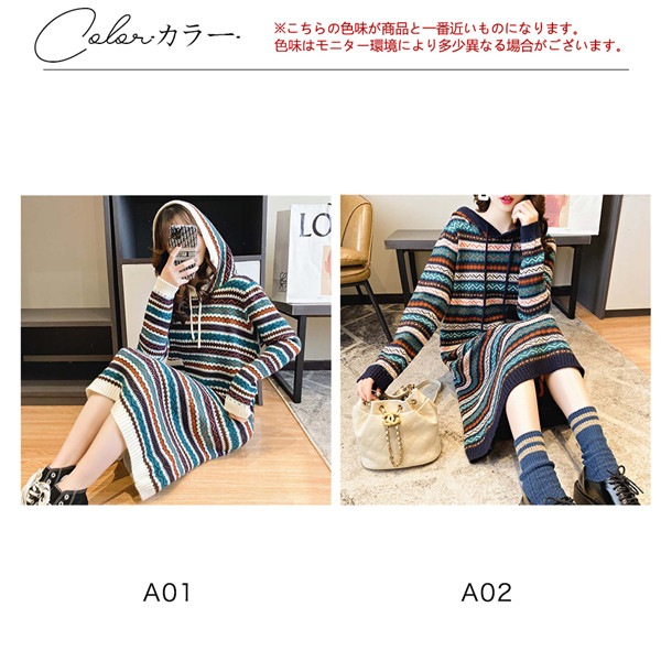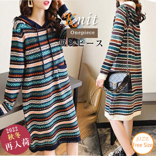 ポイント超超祭 超人気 ワンピース レディース フード付き パーカー ニット 長袖 膝丈 ゆったり トップス 普段着 カジュアル 秋冬物 暖かい おしゃれ