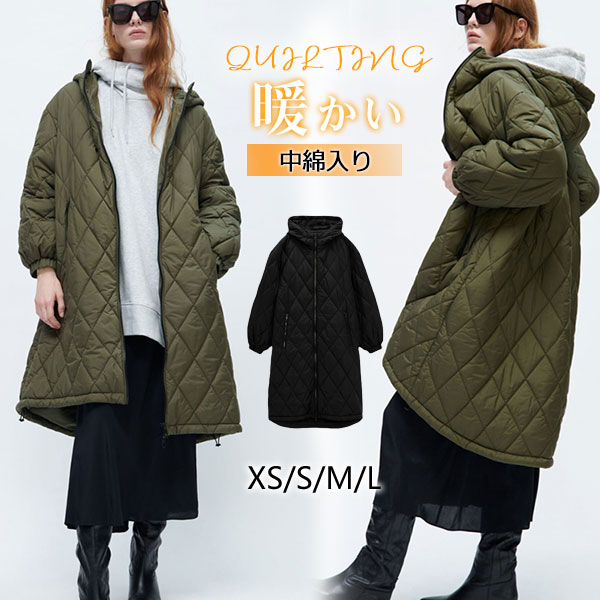 セール中 中綿コート レディース キルティング アウター フード付き 中綿ダウンコート ロング丈 軽い 体型カバー ゆったり 防寒 ゆったり 厚手 きれいめ