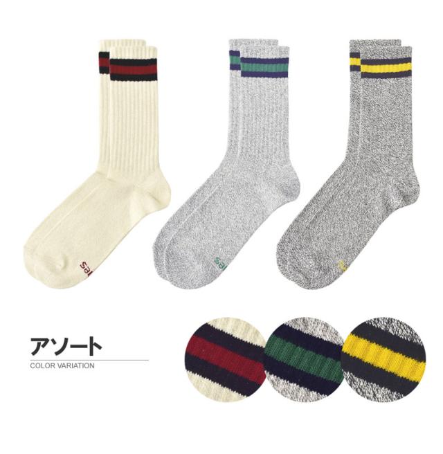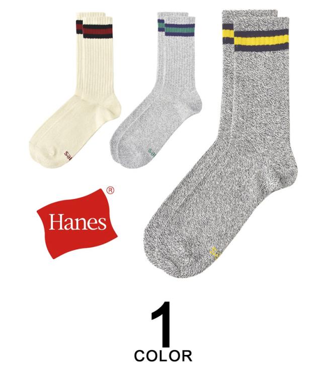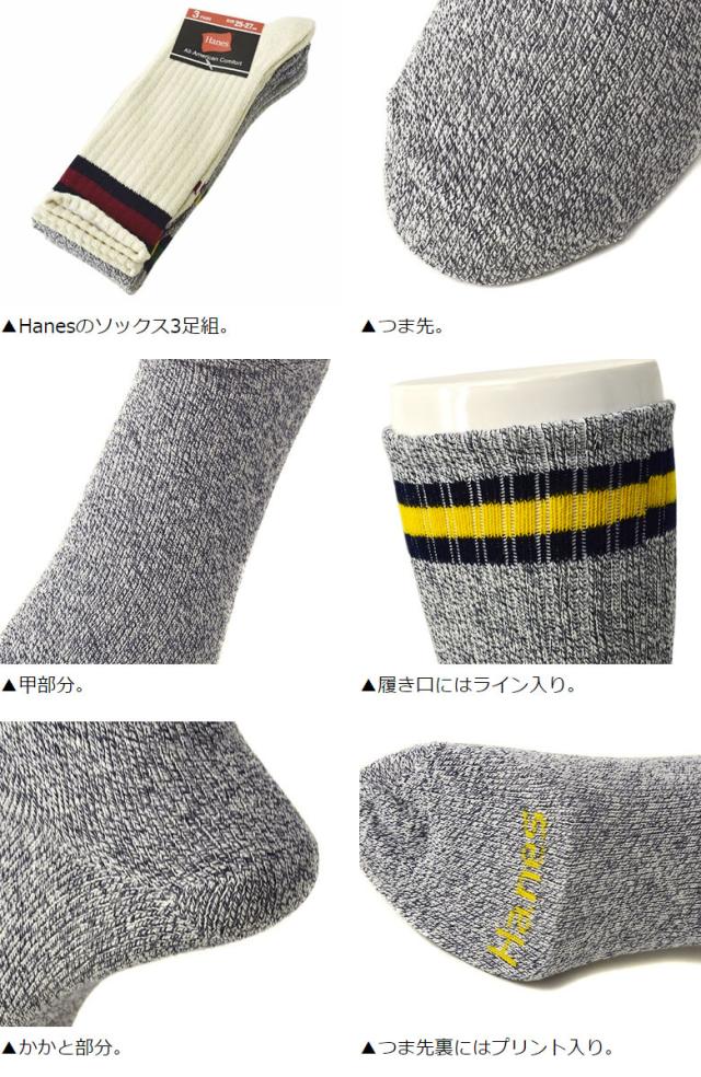 ブランド「Hanes・ヘインズ」の3足組・フルレングス丈(すね丈)ライン入りカジュアルソックスです。